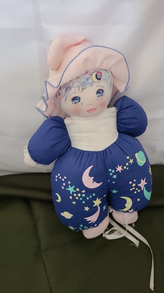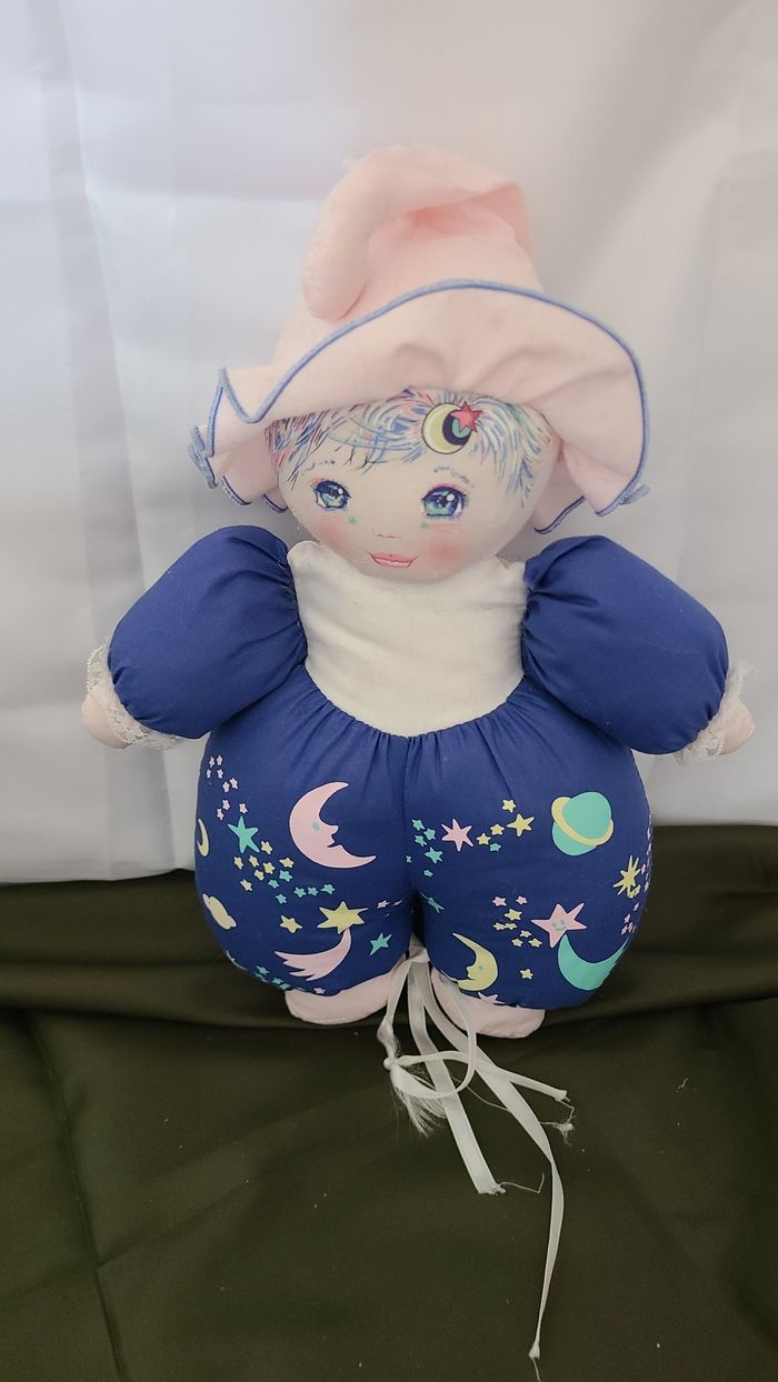 POUPEE MUNDIA DOUDOU BLEU NUIT LUNE ETOILE PLANETE BONNET ROSE - Mundia - photo numéro 1