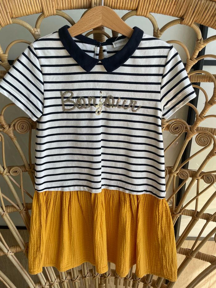Robe fille bi-matière gaze de coton Orchestra 8 ans