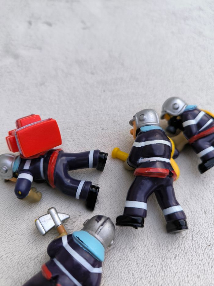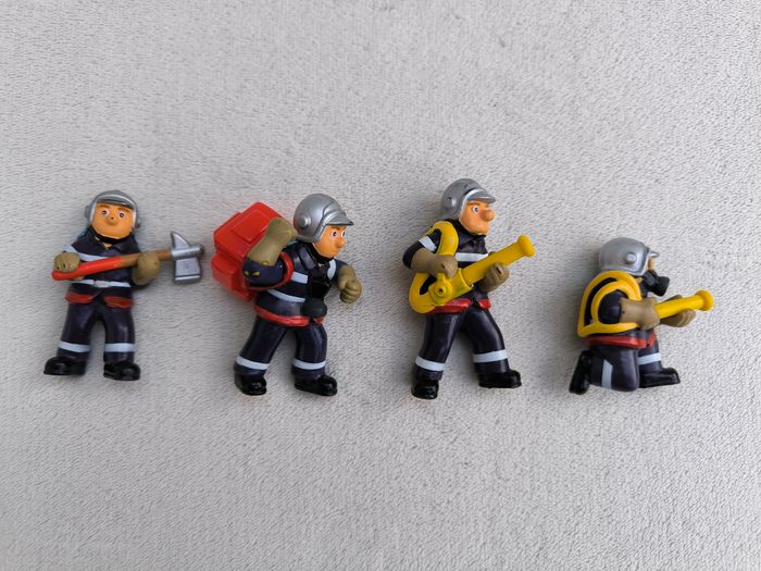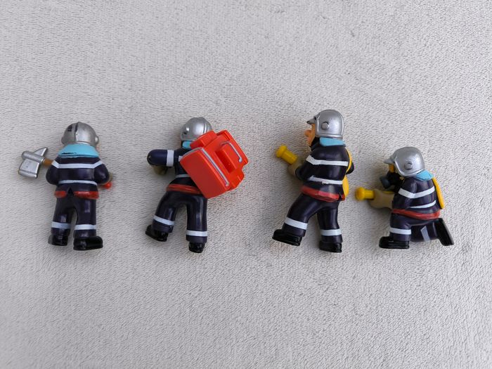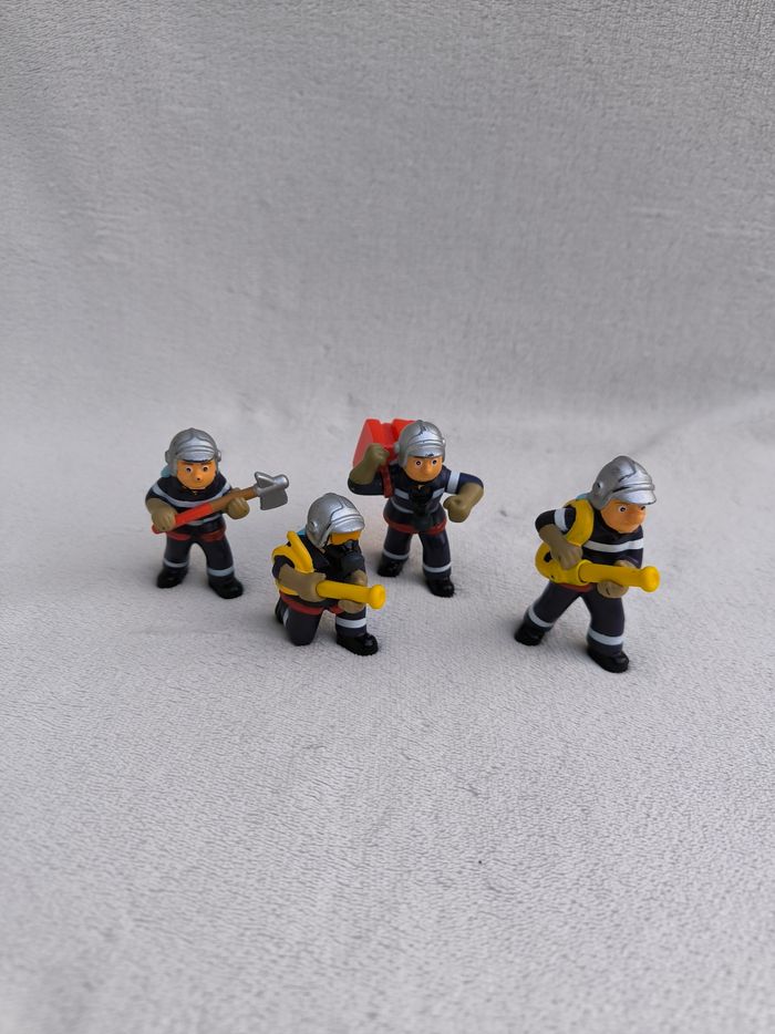 Lot de 4 figurines pompiers • Lance à eau, hache, secouriste • Sac tournant En très bon état #evelyne_jeux