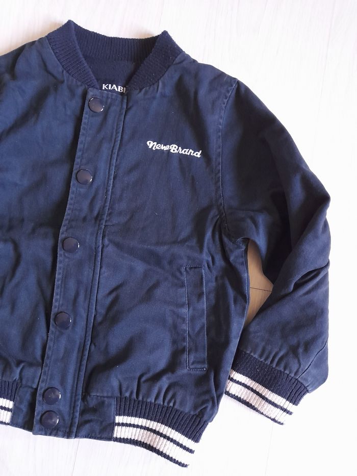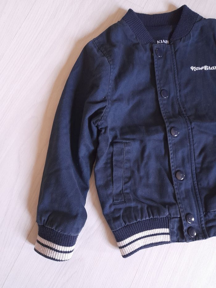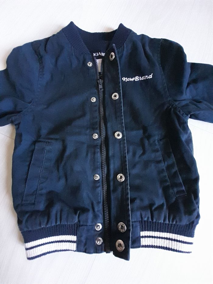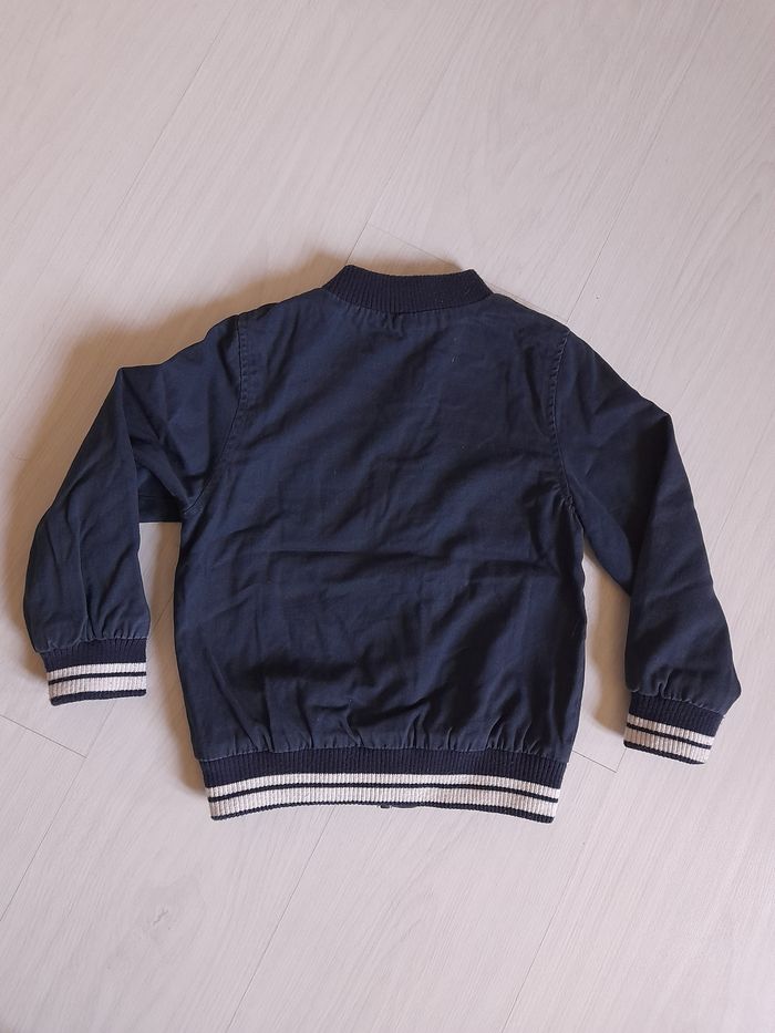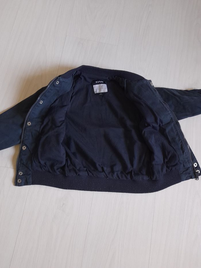 Blouson mis saison T 5 ans Marque KIABI Couleur bleu marine et liseré blanc Attache central fermeture éclair et pressions 2 poches devant Très très bon état