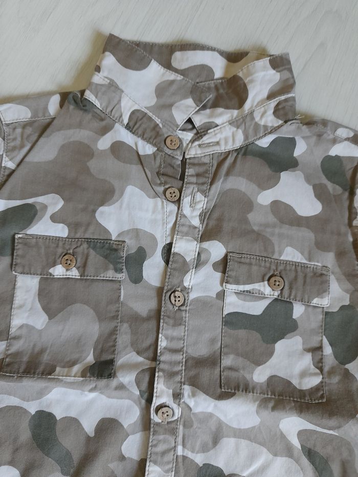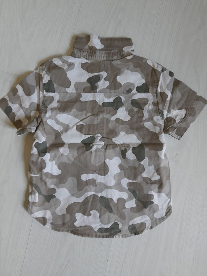 Chemise T 5 ans Marque ORCHESTRA Couleur gris camouflage Attache central boutons 2 poches poitrines Manches courtes 100 % coton Très très bon état