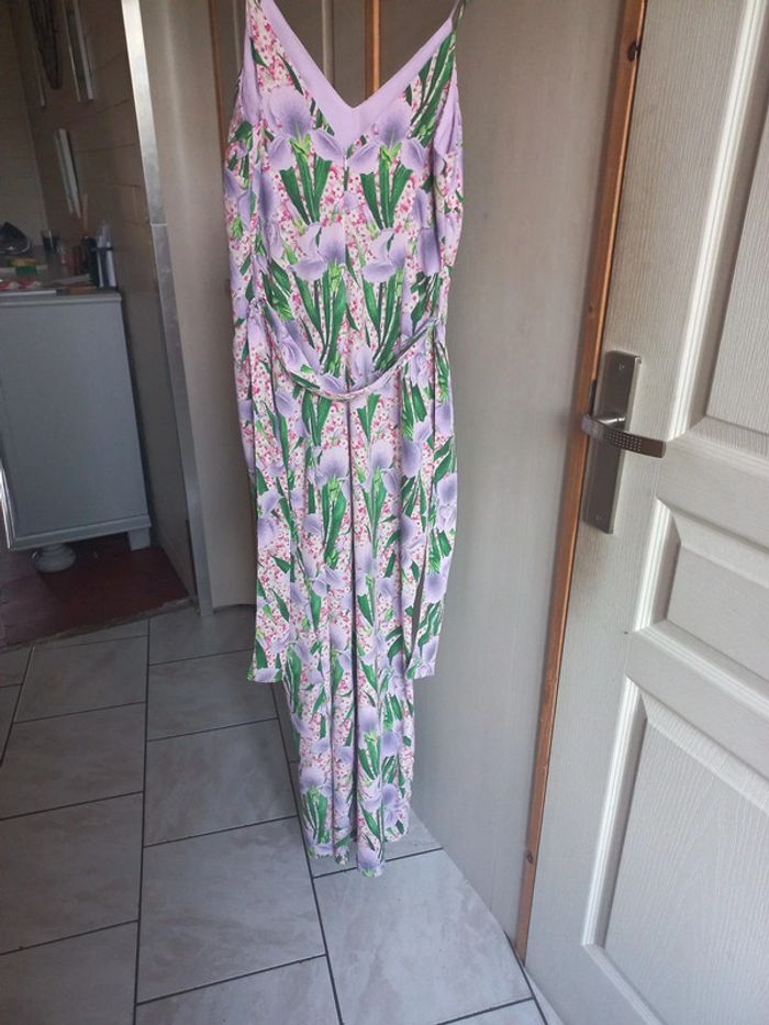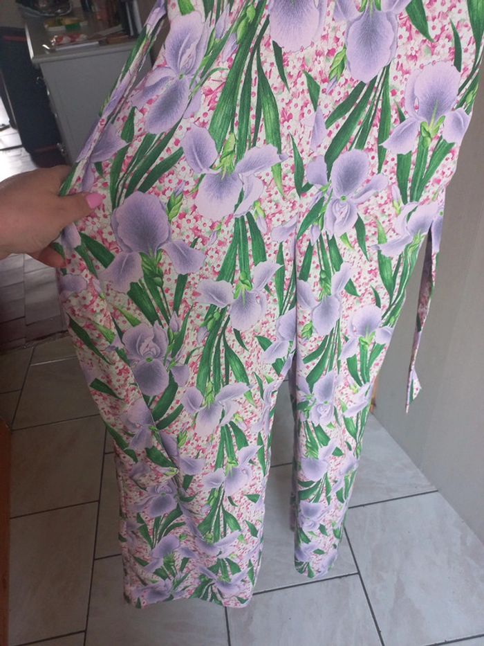 Combinaison Mauve imprimée fleurs Ceinture Taille M Jambes larges