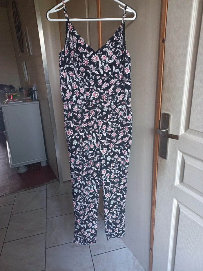 Combinaison Taille S Noire imprimée fleurs Poches Bretelles réglables