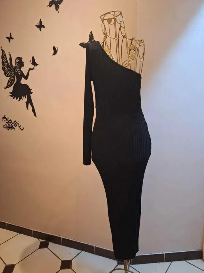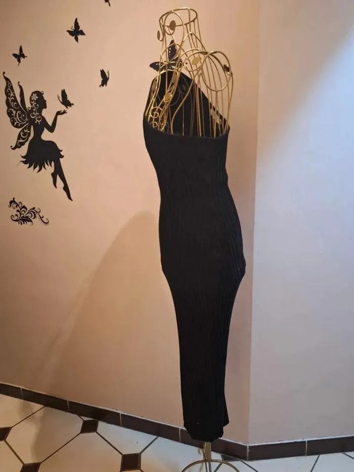 Robe longue noire en mailles cotelées - asymétrique - longueur 119 cm - coupe cintrée et moulante : la matière est extensible et s'adapte à votre morphologie - taille unique idéale pour les tailles 36 & 38 - état sans défaut car peu portée ps : je ne fais pas de photo portée #robenoire #robeasymétrique