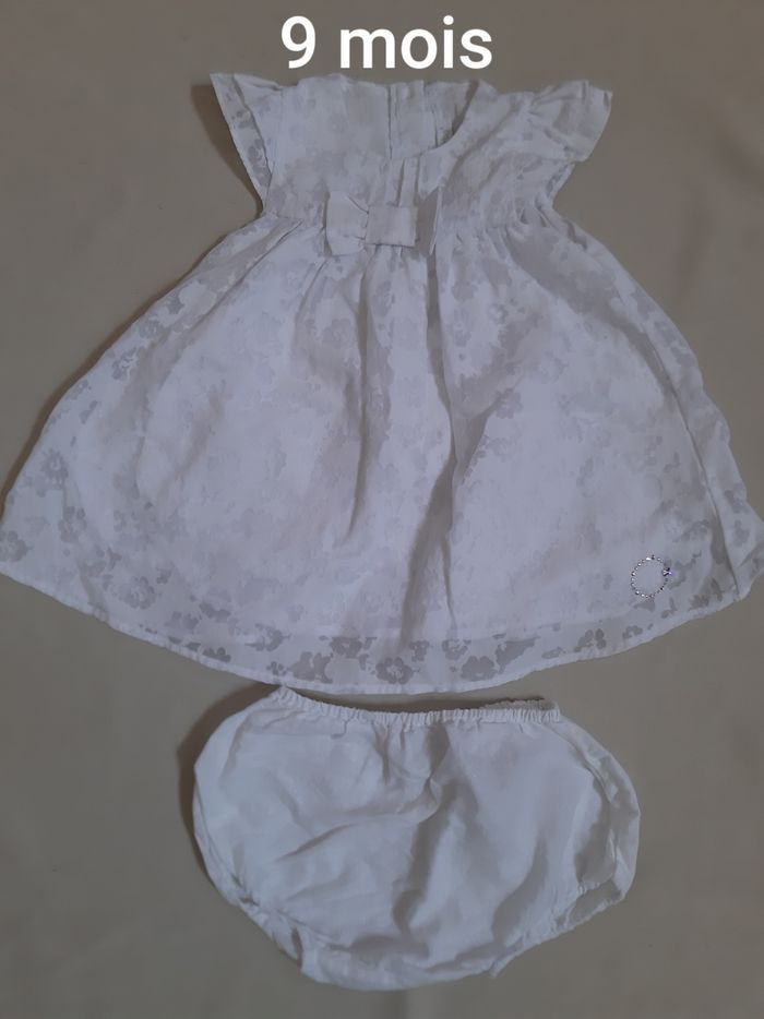 - Robe d'été ou de mi-saison. marque : Absorba taille : 9 mois Petits strass et boutons Swarovski - bloomer blanc, légèrement irisé marque : Natalys taille : 9 mois En très bon état. Remise en main propre possible dans le secteur de Pont-Audemer / Beuzeville / Pont-l’Evêque. Envoi possible. N'hésitez pas à faire un lot pour amortir les frais de port et les frais de protection acheteur. 📦 😊 Vêtements de la taille naissance à la taille 3 ans disponibles. Jouets et livres pour bébé disponibles.