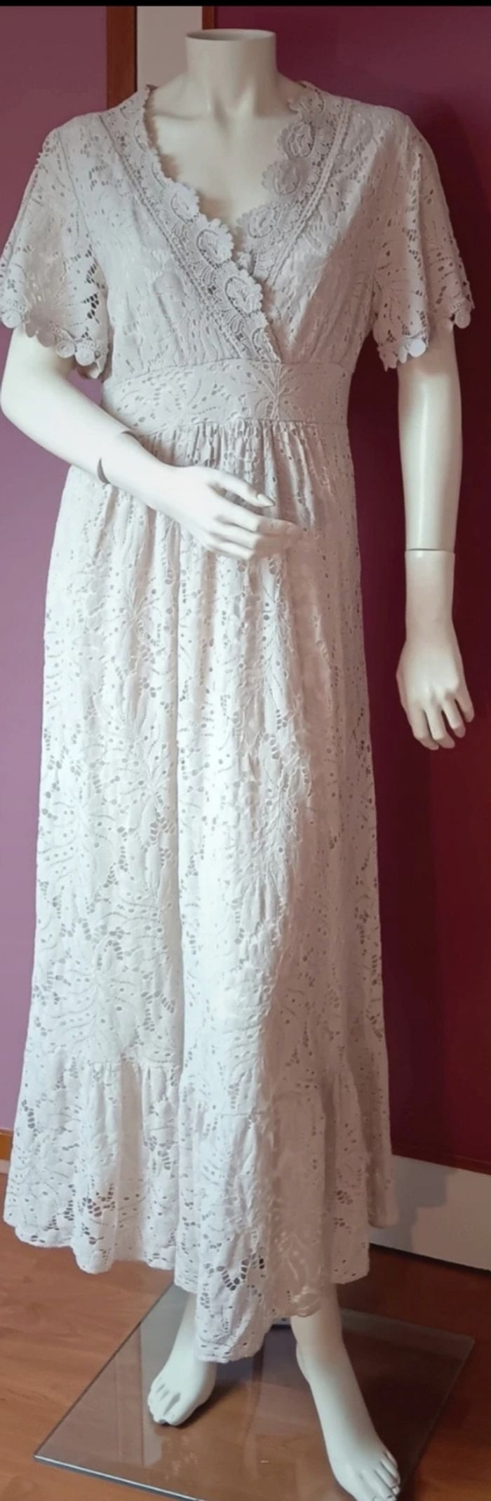 Robe Bohème chic beige. Elle peut se porte avec une ceinture ou avec une veste en jean. Taille unique Il y à les dimensions et à l'arrière de la robe un élastique à la taille. Veuillez consulter les photos pour plus d'informations. Bonne visite dans le dressing🌷