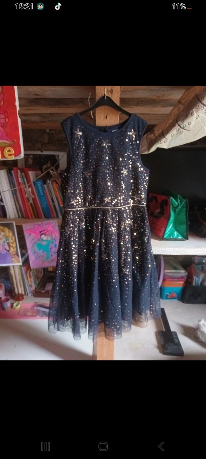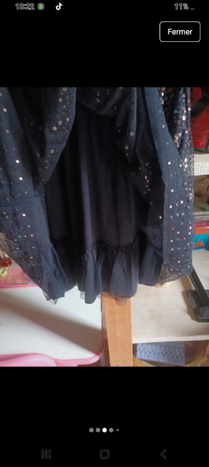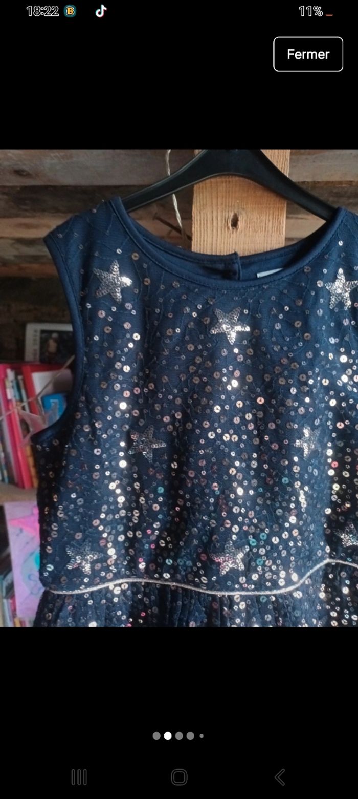 Robe à paillette. Fermeture éclair dans le dos. Doublure en tulle (pas du tout transparente). En très bon état. Taille 7 ans. Très peu porté.