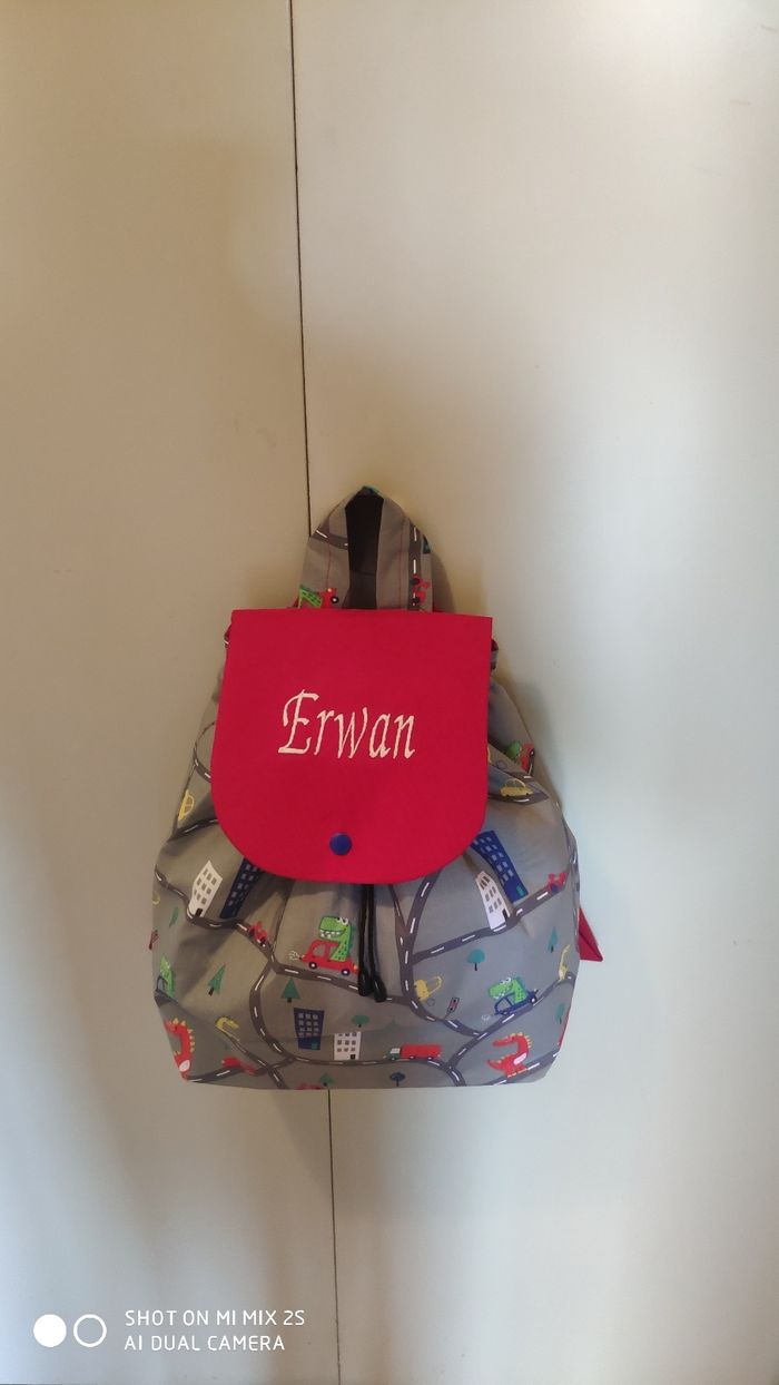 Sac à dos personnalisé pour la maternelle nounou avec une anse, tissu eko-tex français et entoilé , doublure intérieure, fermeture par cordon et serre cordon, pression, fabriqué en Bretagne par moi même créatrice 😄 150choix de tissus.....
