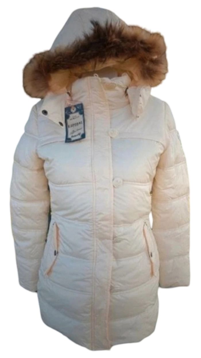 Doudoune KAPORAL FEMME T.S Doudoune longue spécial froid. -coupe cintrée . - capuche amovible,fourrure détachable. - col montant . - Ecusson logoté cousu, épaule. - 4 poches , face avant. - Cordon d'ajustement élastiqué, taille. - Finitions bord côtes, poignets. - Fermeture par zip + boutonnage. Info : poitrine intérieure doublée fourrure. Composition: 100% Polyester Prix 40 € valeurs 129€ ( manque les 2 boutons du haut d'ou le prix . Il y a 1 bouton de rechange sur les 2 voir photo ) Produit neuf authentique étiqueté