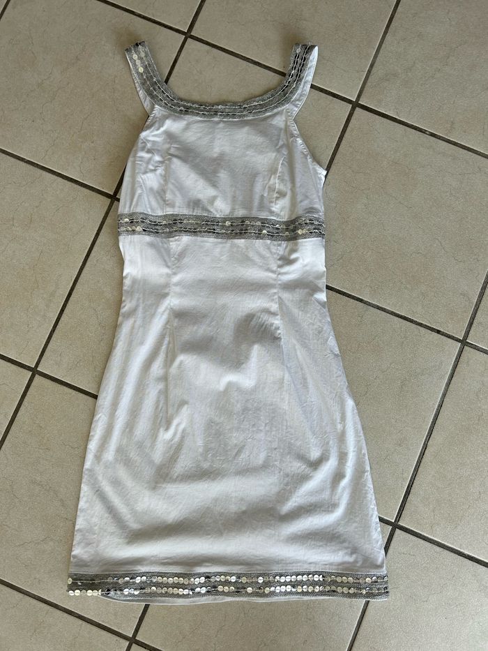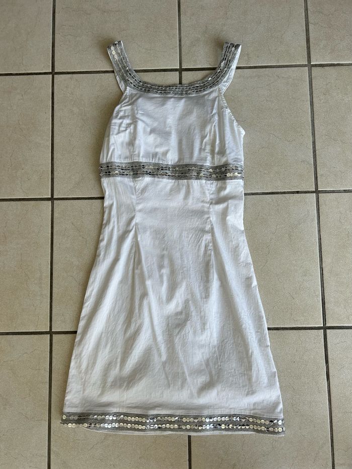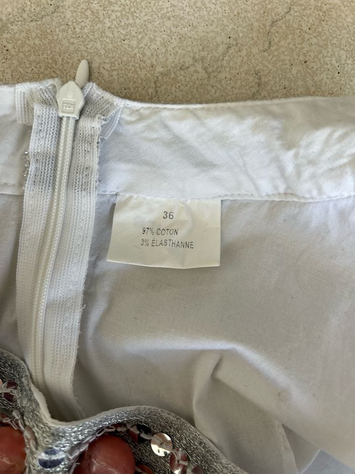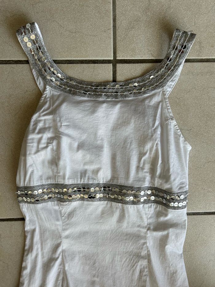 Robe d’été Taille 36 Matière coton et elasthanne Coloris blanc et détails en sequins argentés