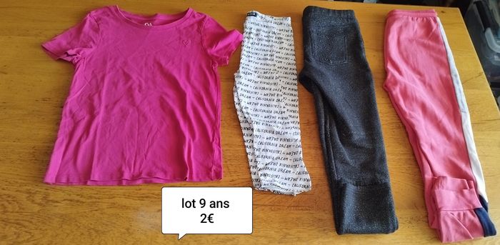 Lot vêtements en bon état Le lot comprend : 1 t-shirt manche courte 1 legging corsair 9/10 ans 1 legging molletonné bouloché 1 bas de survet