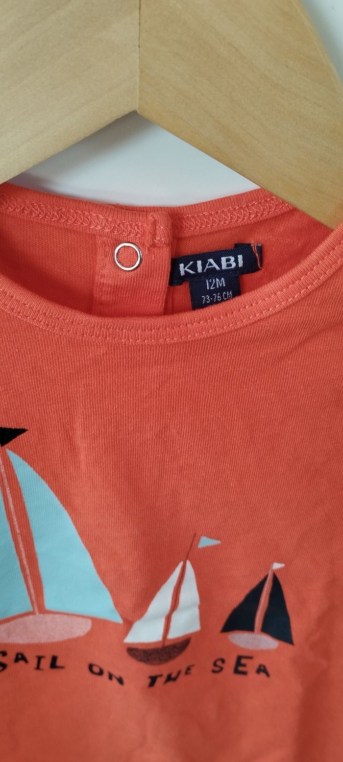 Bonjour, Je vends ce t-shirt MC pour garçon en taille 12 mois de la marque Kiabi en très bon état