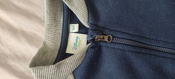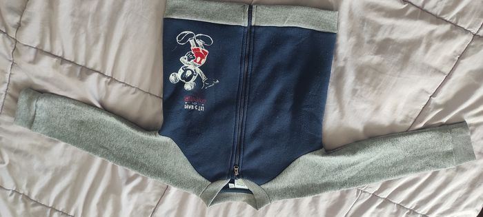 Gilet Disney baby bleu marine et manches grises avec Mickey devant. Fermeture éclair. Taille 36 mois, tient chaud, en bon état. Envoi rapide.