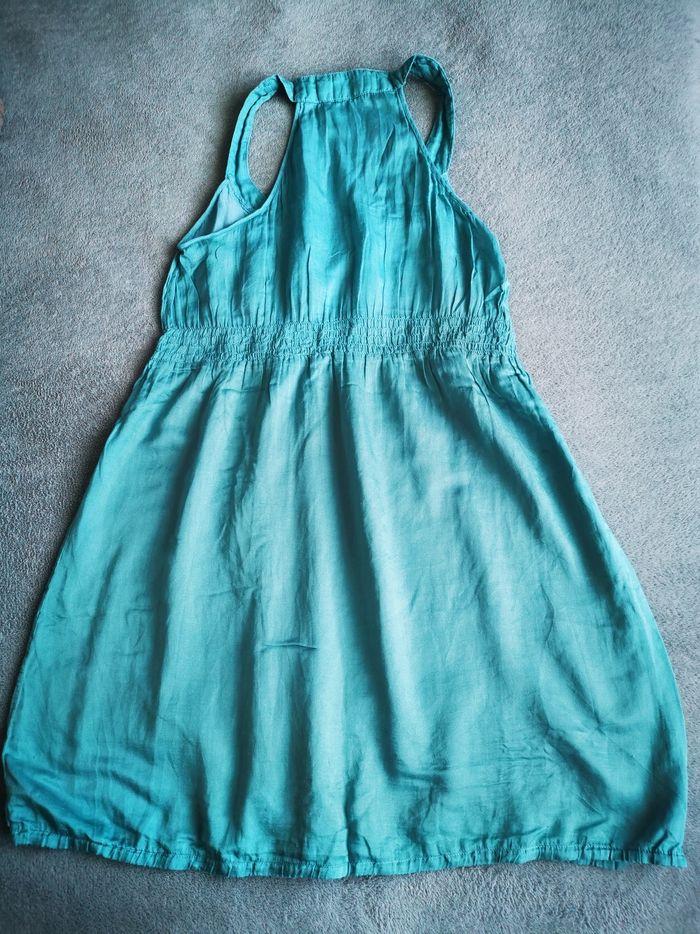 Robe Bershka taille M, taille petit, convient à un 36 /38 couleur turquoise, ceintrée, élastique à la taille en coton et soie.
