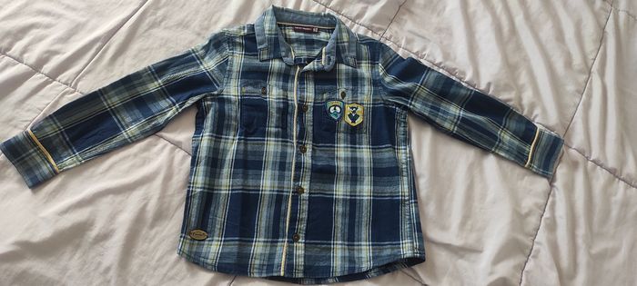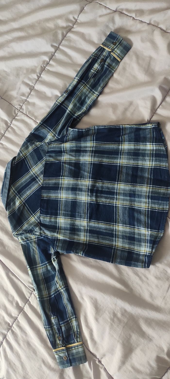 Chemise Sergent Major bleue et jaune à carreaux. Taille 4 ans, 104 cm. Portée une seule fois donc comme neuve. Envoi rapide.