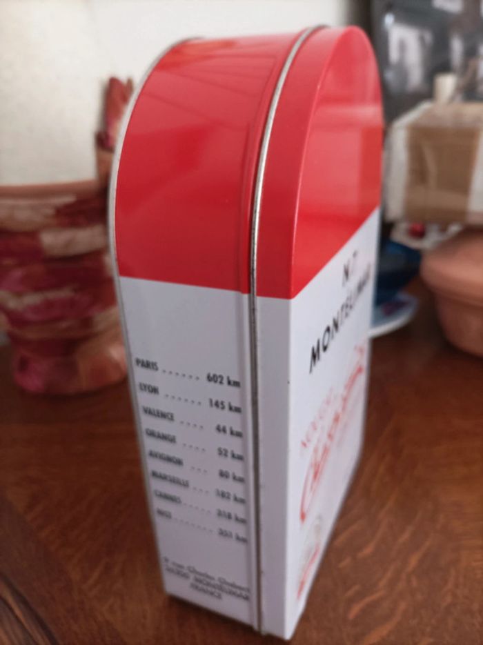 Boîte métal forme borne Hauteur 23 cm Longueur 14 cm Largeur 6 cm Marque Chabert Guillot