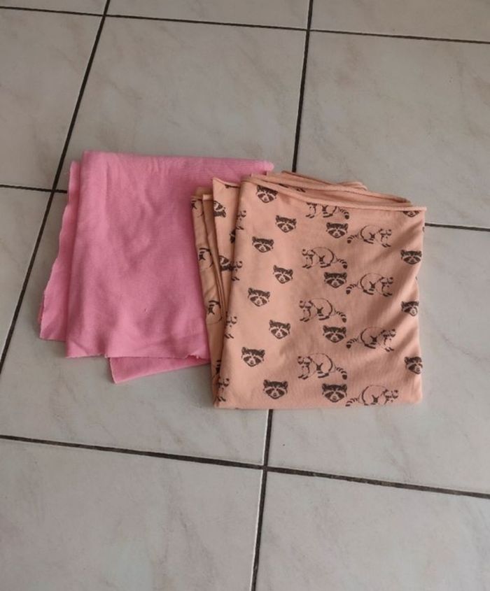 Lot tissu comprenant 🌼 Un coupon de tissu sweats polaire rose 🌼 Un coupon de jersey motif raton laveur vieux rose marque panda love fabrik (coupon neuf) Prix ferme pour le lot, je ne delotte pas. PAS DE NÉGO !!!