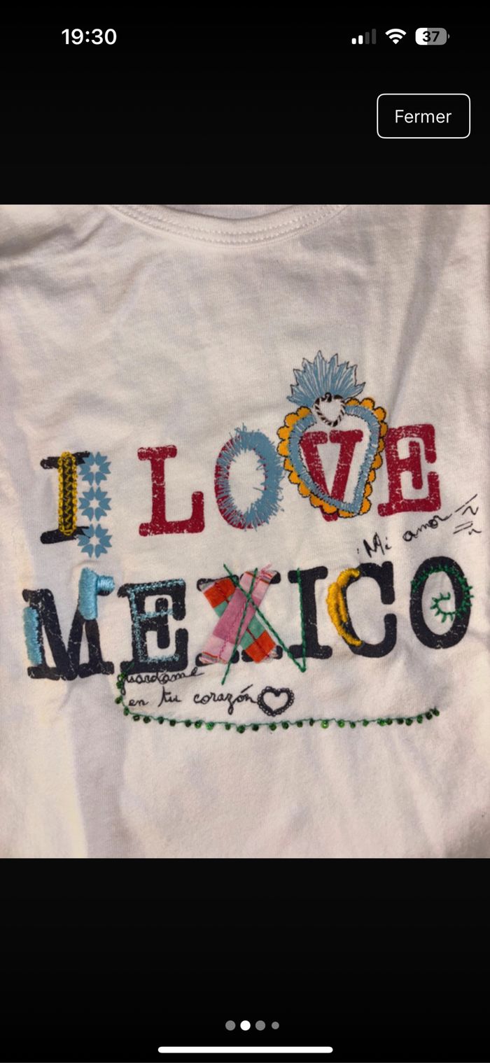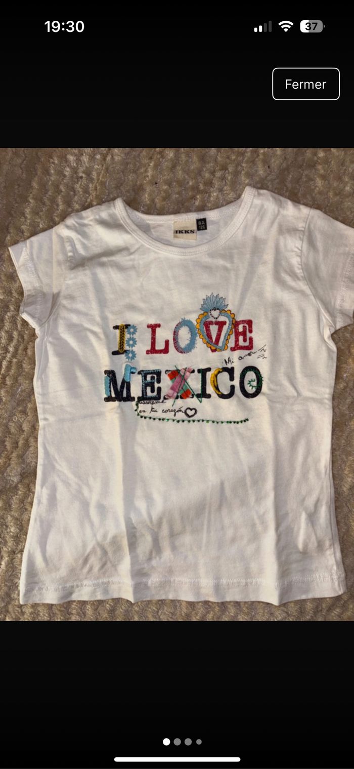 T-shirt blanc de la marque IKKS, motif brodé "! Love Mexico" très coloré et original. Matière douce, coupe classique, parfait pour l'été. #IKKS #TshirtEnfant #TshirtFille #LoveMexico #ModeEnfant #TshirtBlanc #Taille8Ans