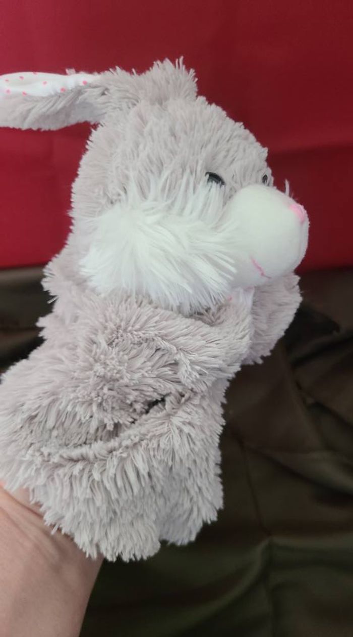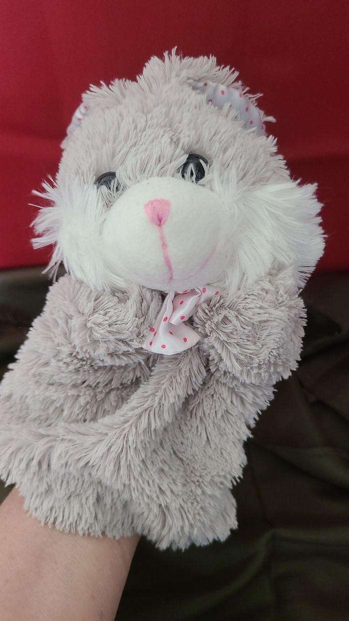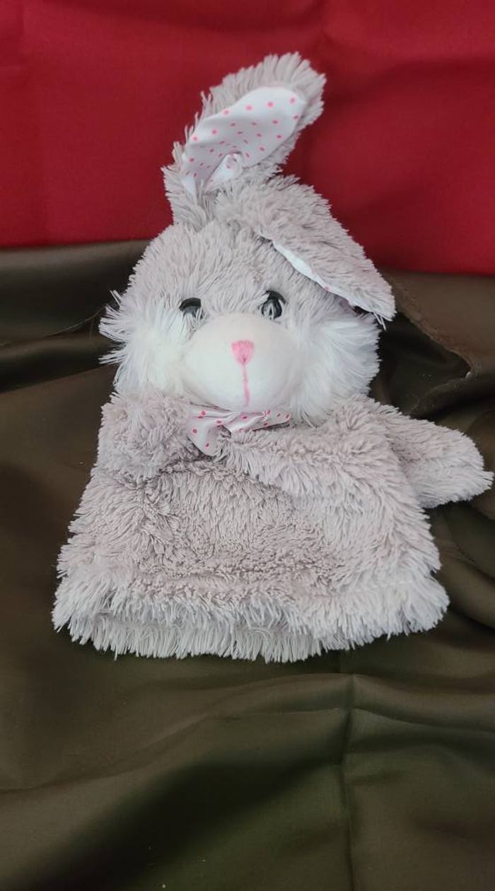 peluche marionnette lapin gris flo pois PMS - photo numéro 1