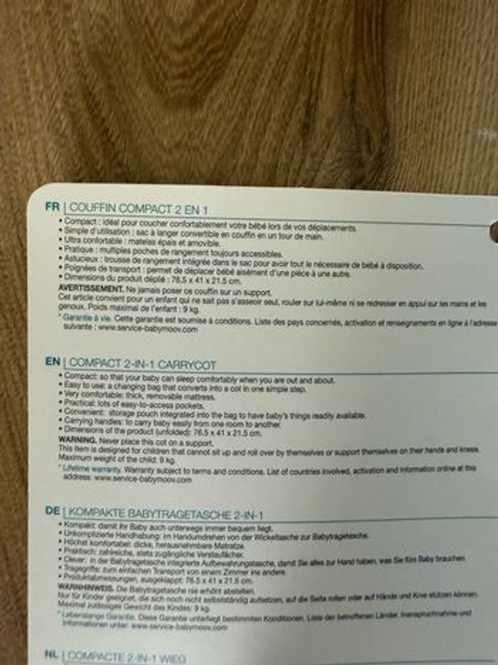 - Couffin nomade 2 en 1 : le sac à langer devient en un clin d'œil un véritable couffin bébé - Pratique, il suffit d'ouvrir la fermeture éclair du sac pour le convertir en couffin nomade - Ultra confortable avec son matelas amovible épais en mousse Dimensions du produit déplié (L x l x h) : 76.5 x 41 x 21.5 cm Dimensions du produit plié (L x l x h) : 47 x 21 x 30 cm État impeccable !! Très peu utilisé