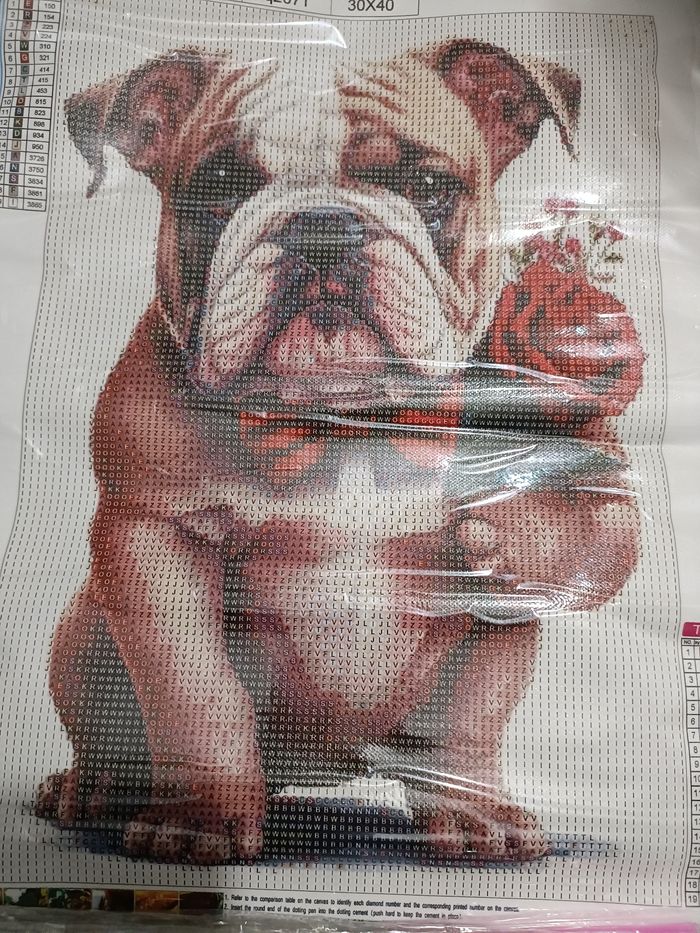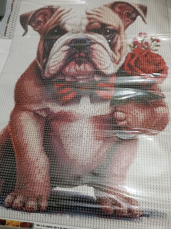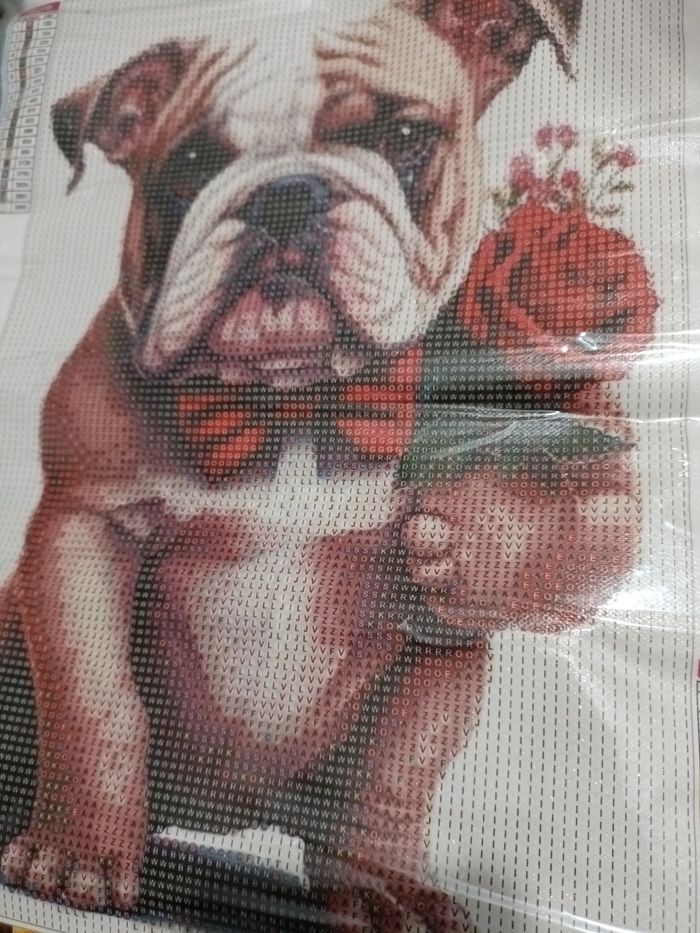 Diamond painting 💎 30/40🏷️ Chien avec bouquet D'autres 💎 dans mon dressing ✨ Diamants de forme ronde