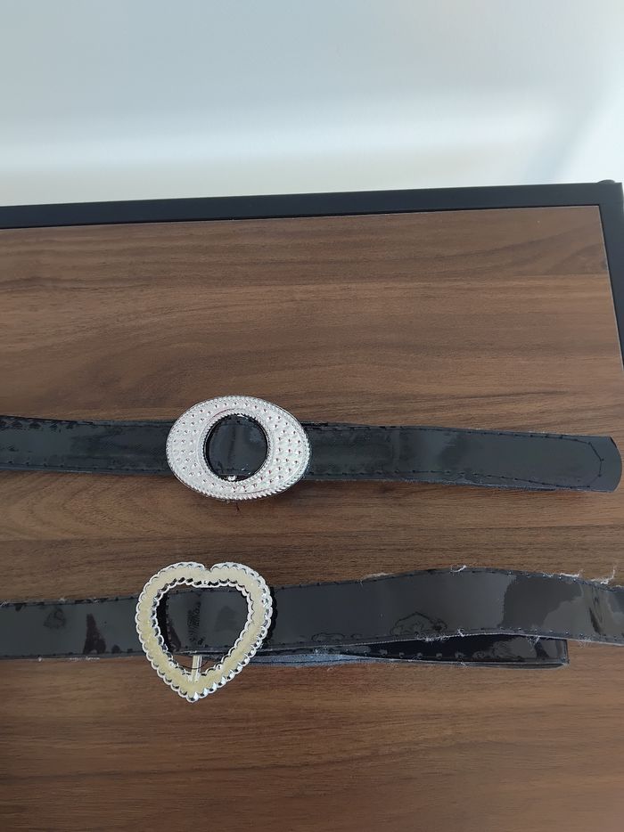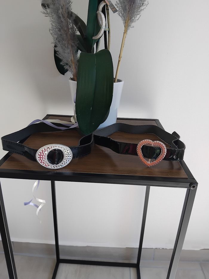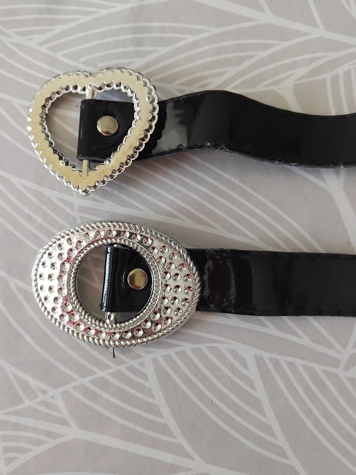 Lot de 2 ceintures fantaisie. Environ 70 cm. Motif coeur et forme ovale. Pas de trous. A mettre dans la boucle. #fille24moisnade3033 #fille3ansnade3033 #fille4ansnade3033 #fille5ansnade3033 #accessoirefillenade3033