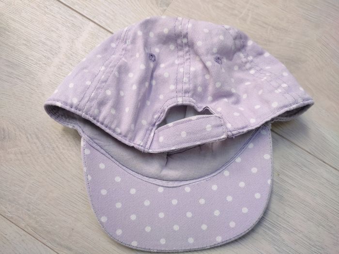Casquette chat mauve à pois blanc Kiabi. Taille 49 cm. Très bon état.