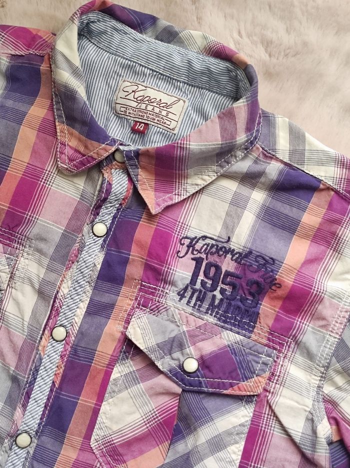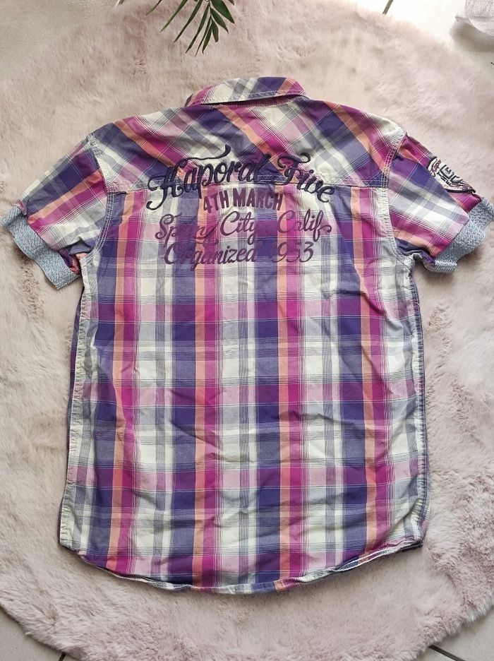 chemise à carreaux coloré avec manches courtes en 100% coton. Marque Kaporal en 14ans. En parfait état.