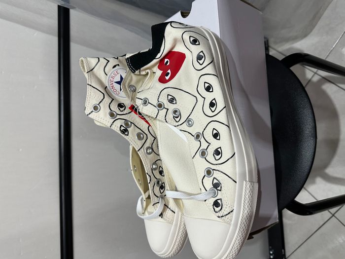 Modèle : Converse Comme des Garçons White Heart Print Taille : 44.5 Référence/SKU : 1CL703 👟 Paire certifiée authentique et neuve par Limited Resell