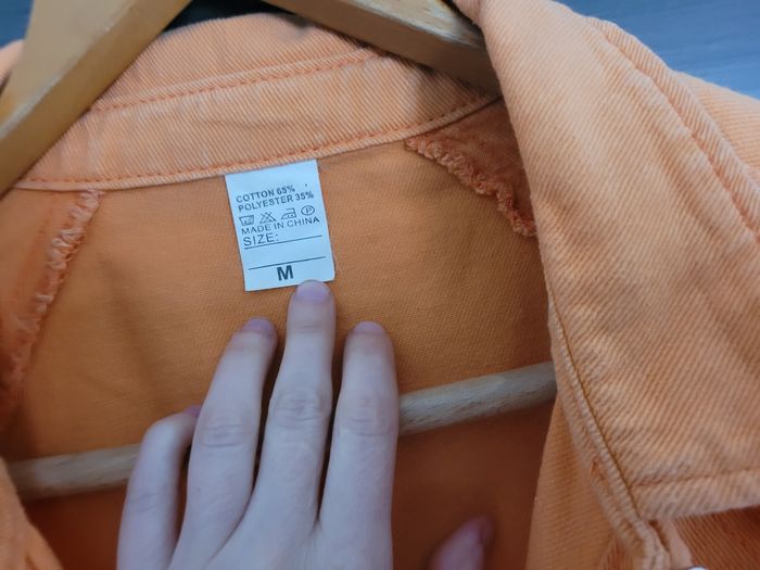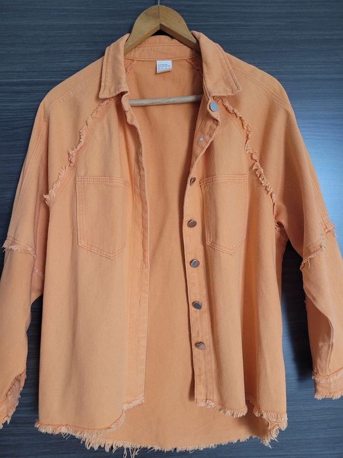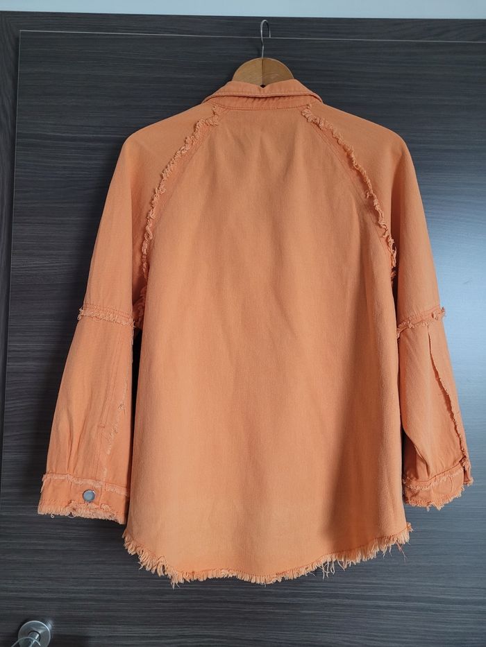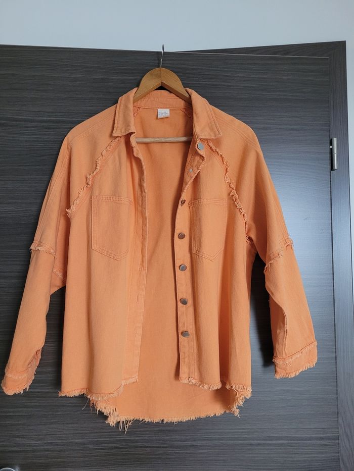 Veste en jean M Orange Veste décontractée Largeur aisselle 60 cm Longueur 63 cm Achetée sur Amazon En très bon état, mais zone plus claire en bas dans le dos