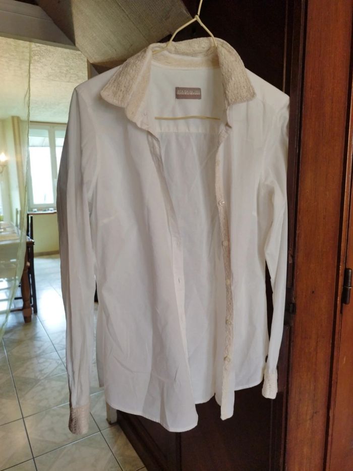 Chemise blanche col dentelle beige M/38 - photo numéro 1