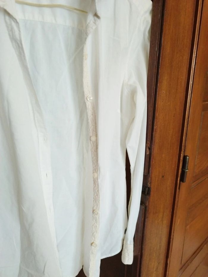 Chemise blanche col dentelle beige M/38 - photo numéro 2