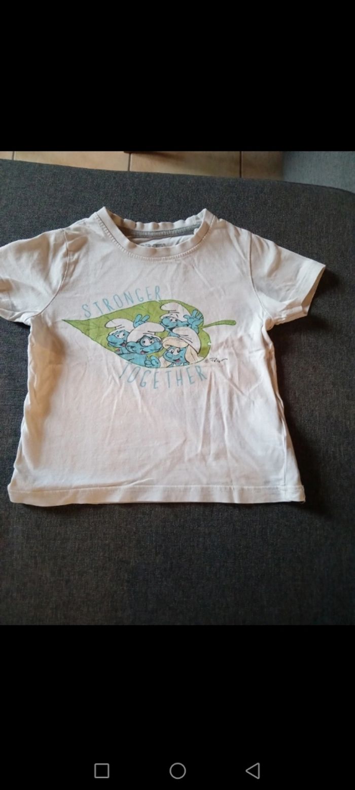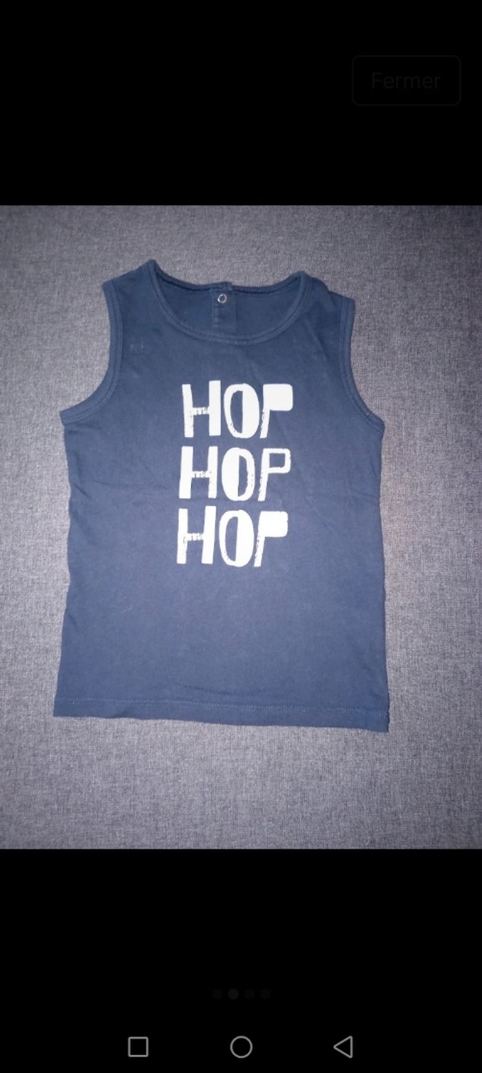 1 débardeur marine avec Pressions au dos kiabi 36 mois en très bon état 1 tee-shirt Schtroumphs lidl 98/104 en bon état