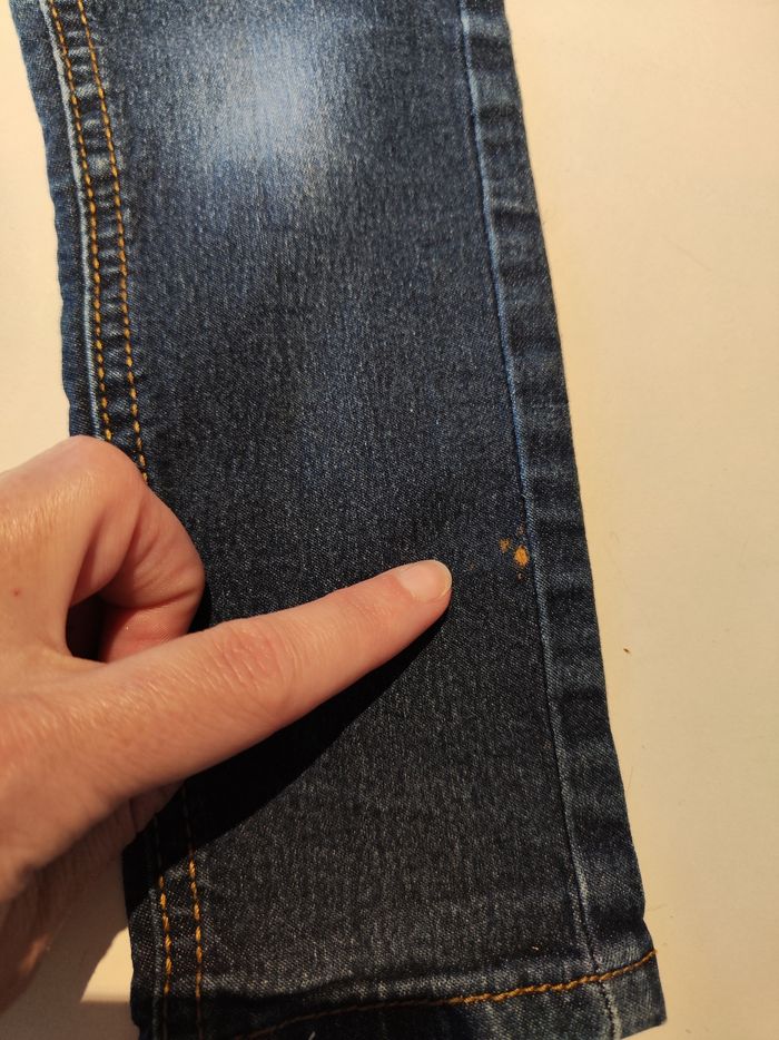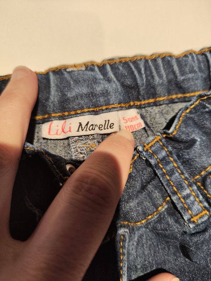 Jean bleu effet délavé aux genoux Porté rarement (acheté pour ma nièce) 5ans /110cm LILI MARELLE Petite tâche sur le bas de la jambe gauche (voir photo) #jeans #enfant #bleu