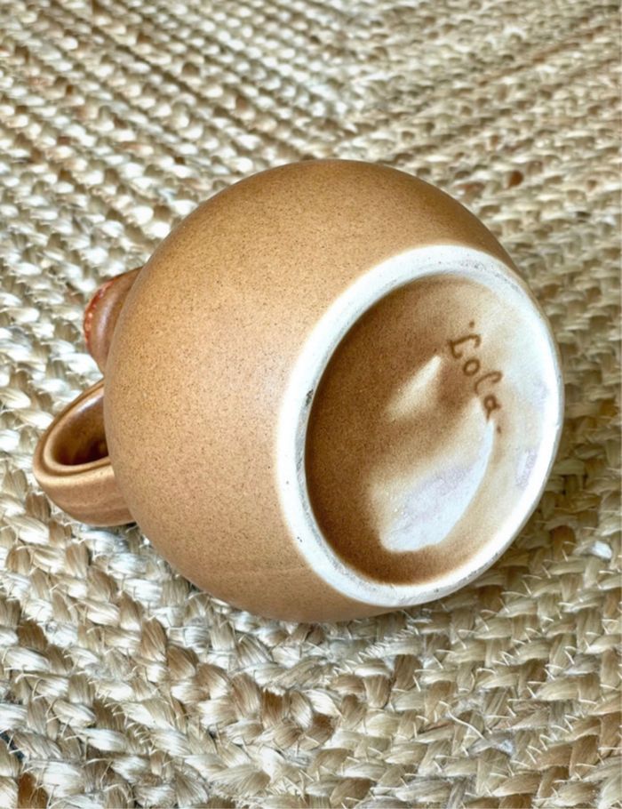 Beau pichet en céramique Signé Lola Dimensions: 17 cm (hauteur) / 15 cm (largeur) Très bon état