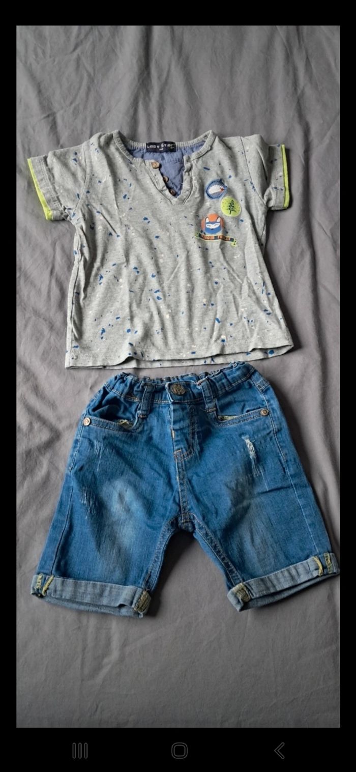 Taille 18 mois. Short jean souple et tee-shirt