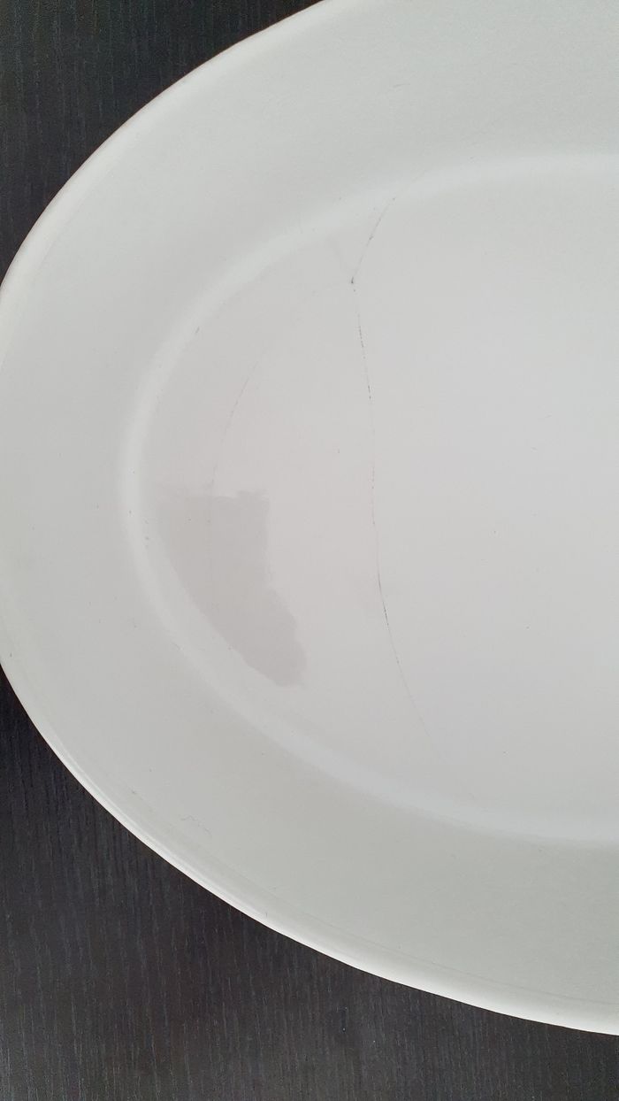 Grand plat passant au four, au micro onde ou au froid avec une légère fisure 34x25x7cm