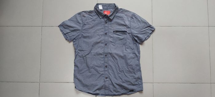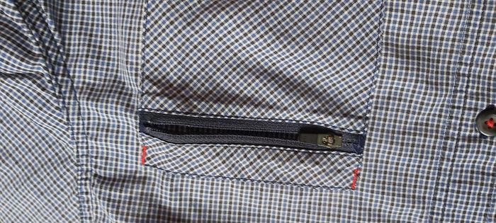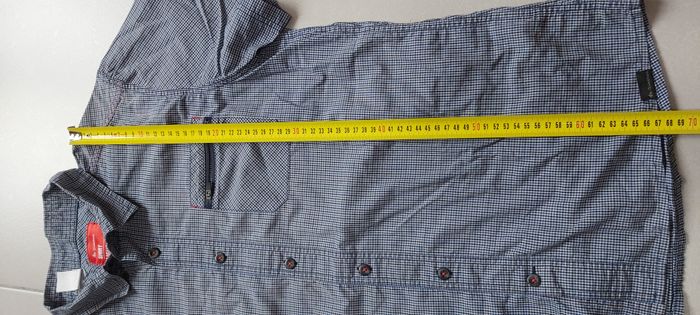 .Chemise manche courte Une poche zippée Une griffe dans le bas du dos a l'arrière voir photo Couleur : bleu blanc noir Taille L #carineddiLhomme