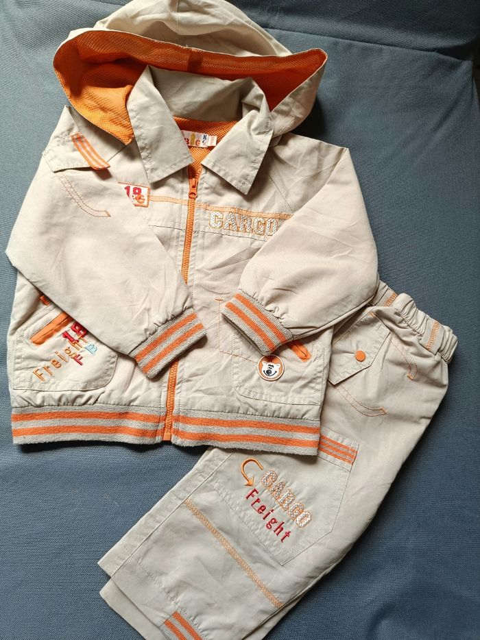 🧸Détail du vêtement 🧸 Ensemble survêtement beige et orange. En très bon état malgré une micro tâche sur une manche (cf photo). Taille 18 mois. 🛍️ Découvrez dans mon dressing une sélection adorable de vêtements dans la taille de vos petits 💸 Profitez de réductions irrésistibles à partir de 2 articles achetés. Les négociations sont possibles, dans la limite du raisonnable.