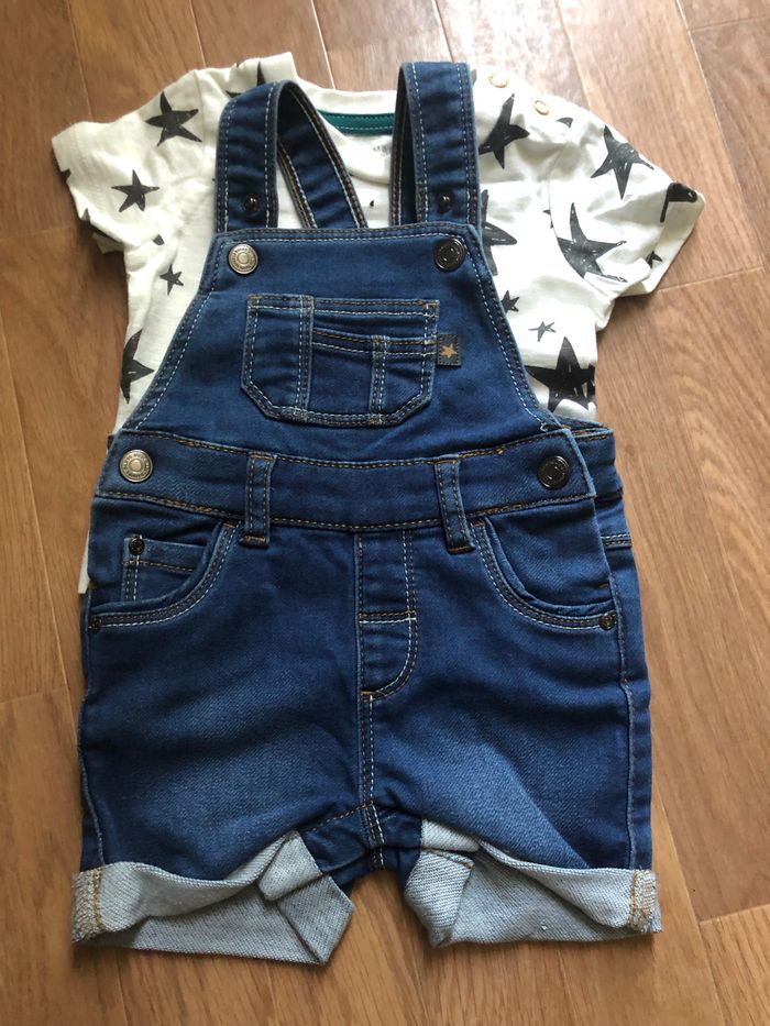 A vendre salopette garçon neuf. Jamais porté Taille: 6-9 mois