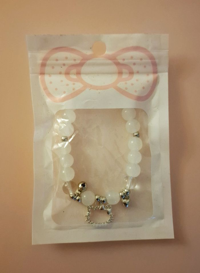 Bracelet Hello kitty neuf Blanc et argenté Taille réglable ( élastique) Strass argenté #sanrio #chat #cadeau #fille
