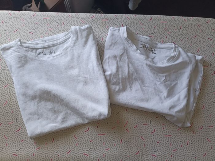 Lot de 2 maillots de corps taille 134/140 Blanc Un plus court que l'autre De géant action En bon état Porté quelques fois #maillotdecorps