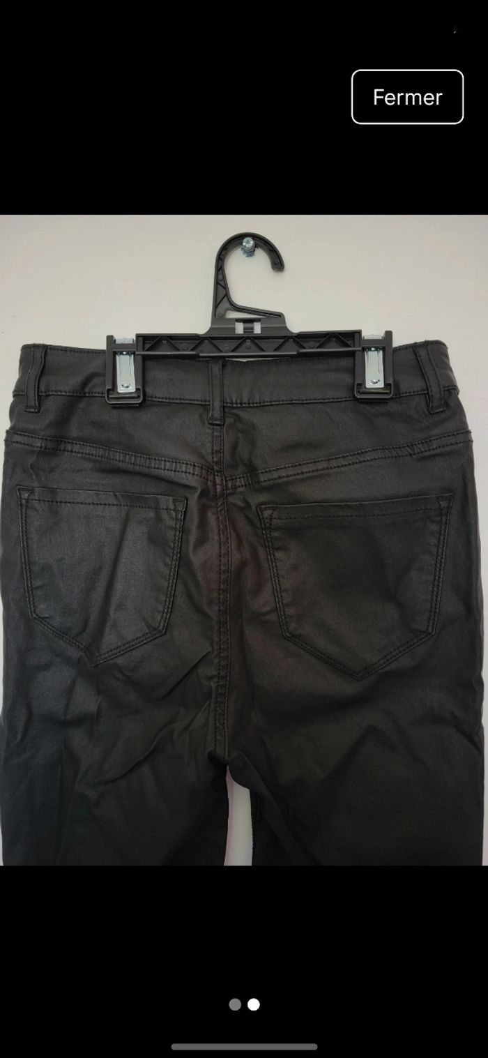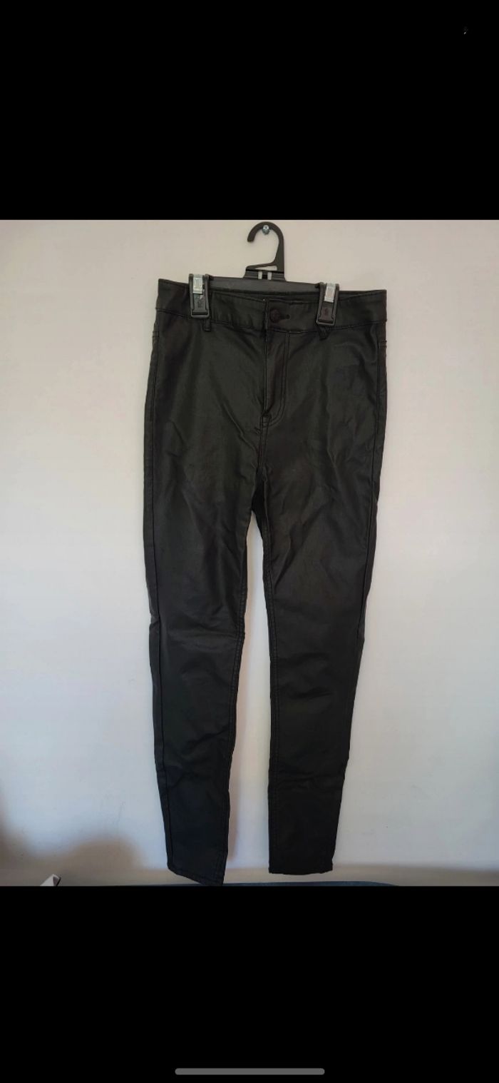 Pantalon effet cuire, en enduit Très peu mis. Taille haute (froissé car plié depuis un moment)