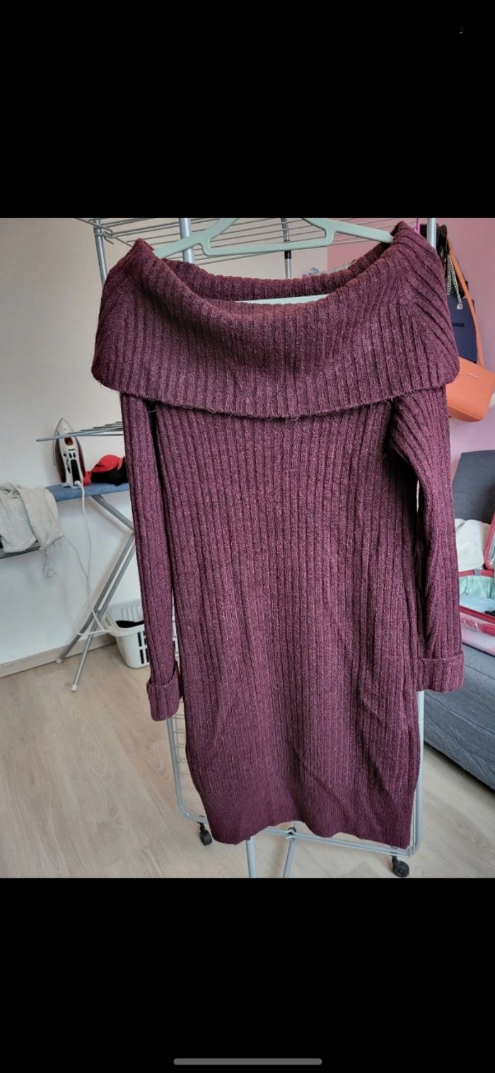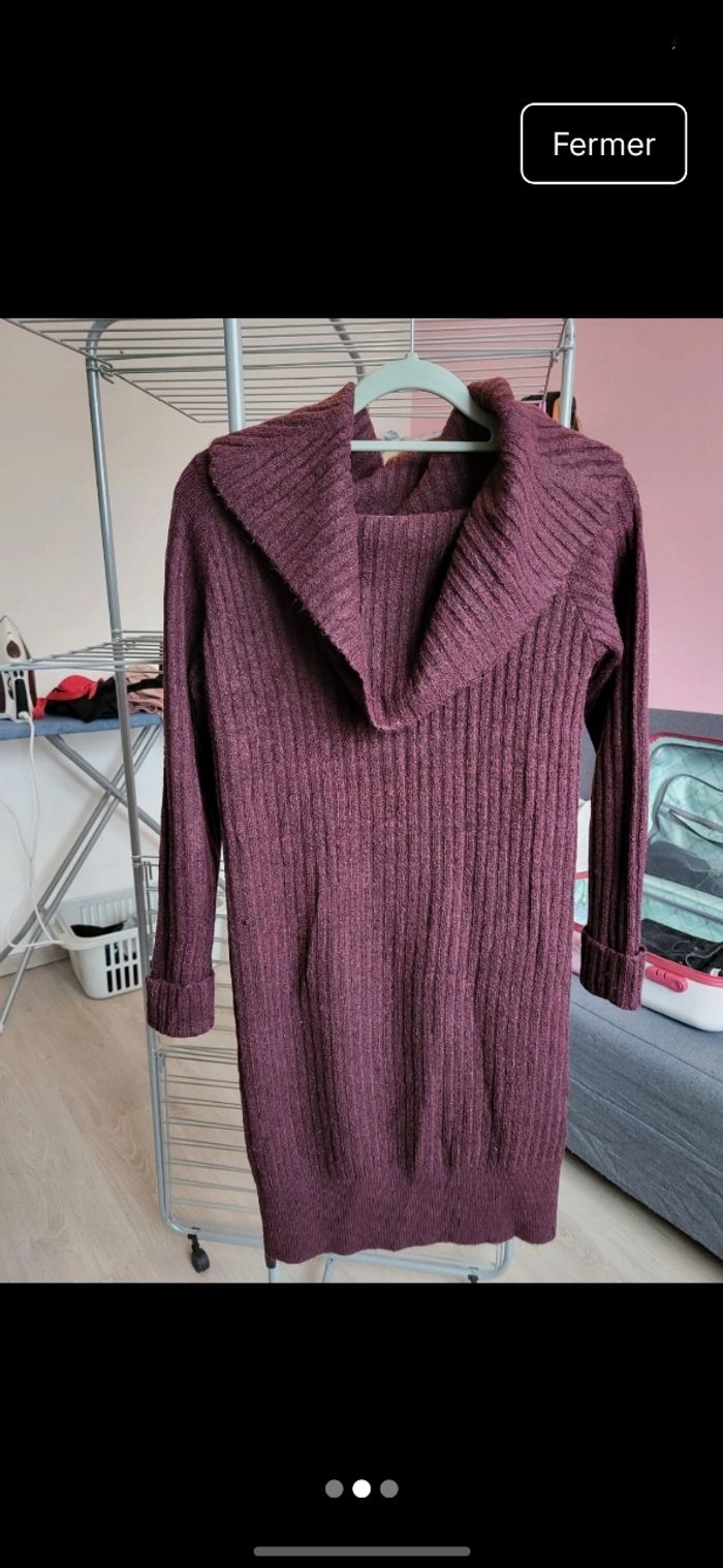 Robe pull violette. Le colle se porte de plusieurs façons Jamais mise, neuve