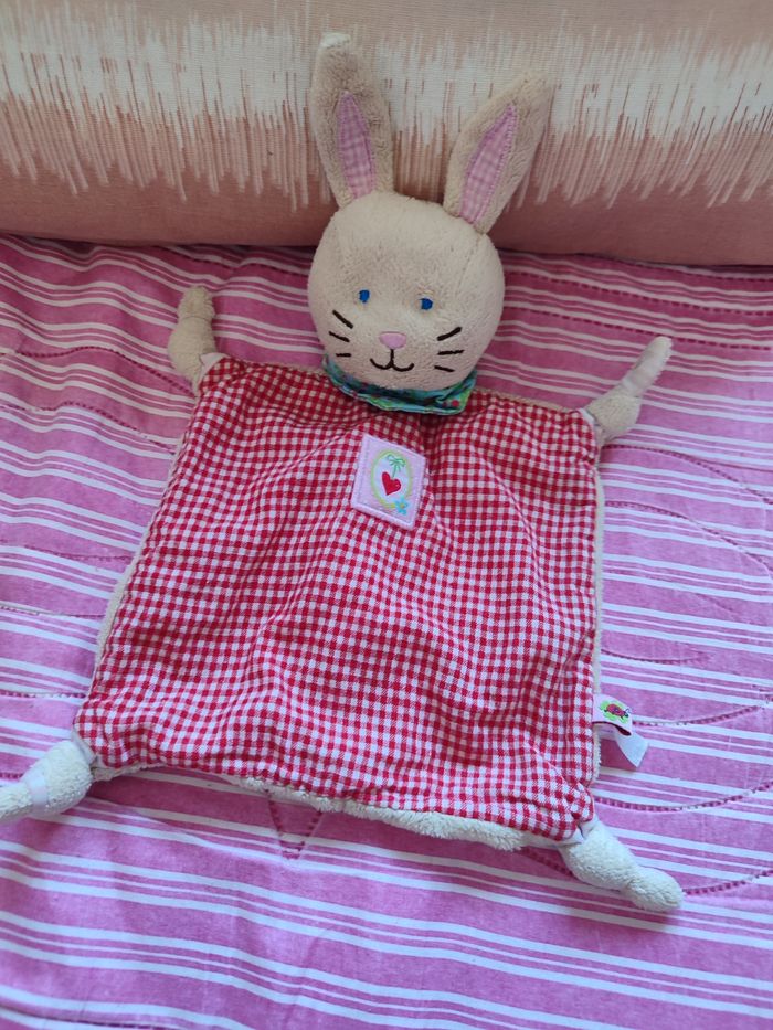 Doudou lapin vichy rouge allemand - photo numéro 1