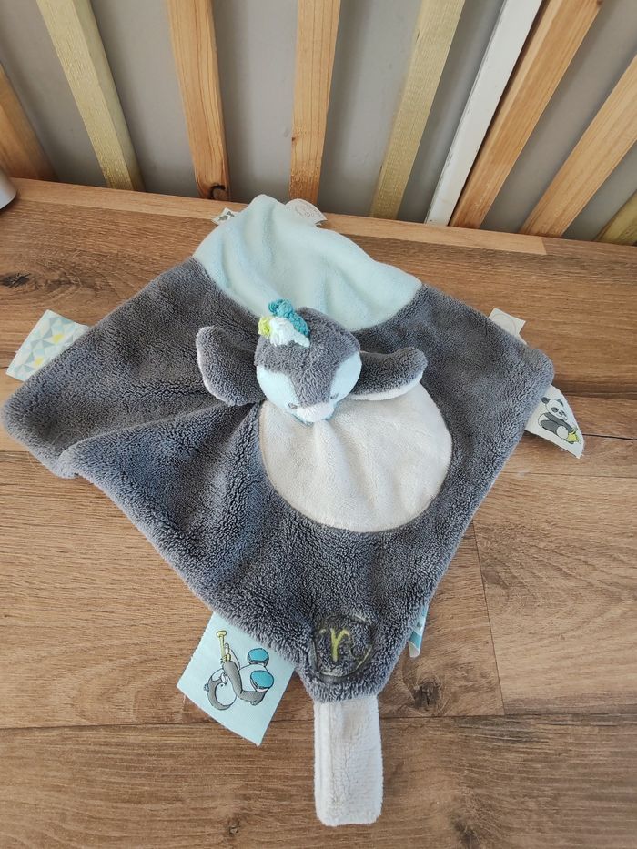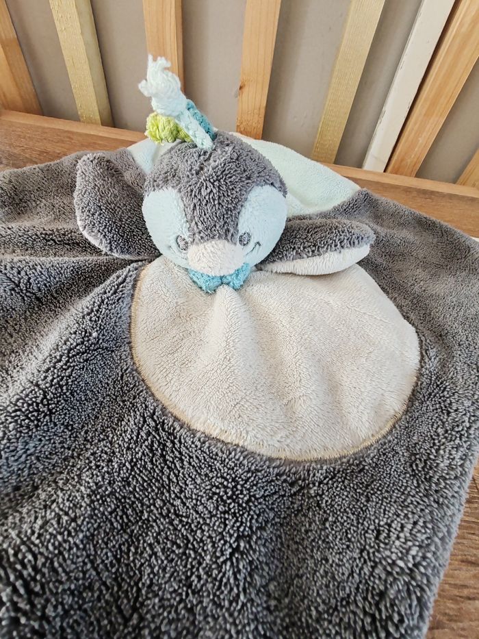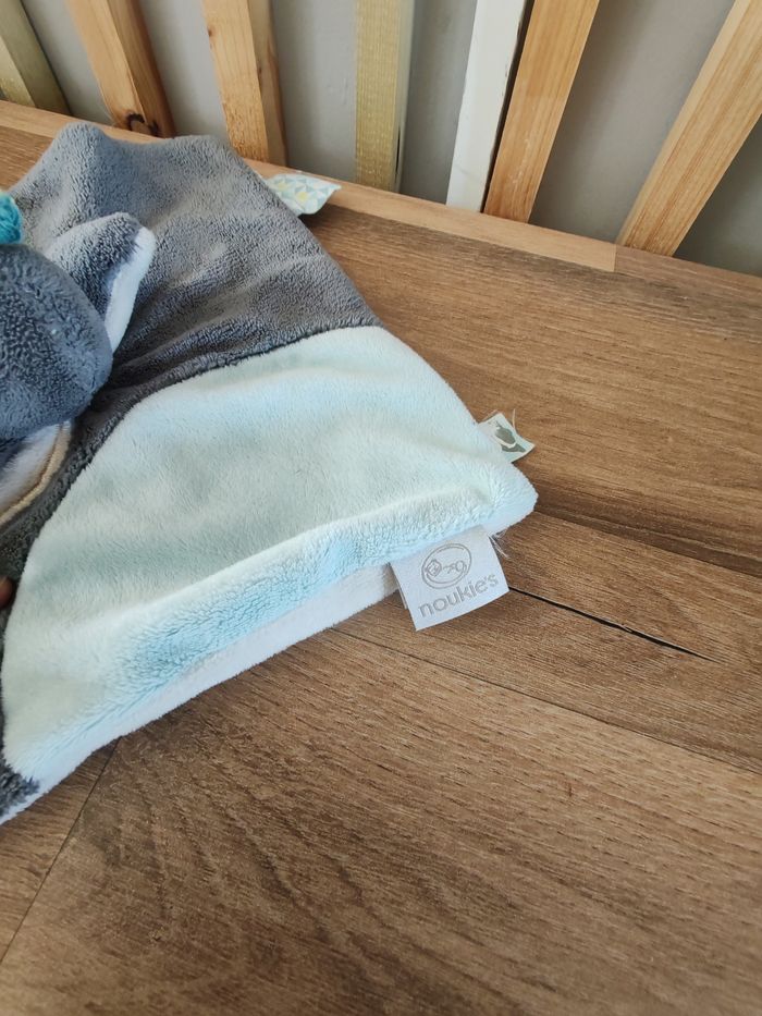 Doudou plat louis le pingouin NOUKIE'S Louis et Scott gris bleu blanc 25 cm environ Tbe Étiquette marque présente 28 euros Envoi en relais