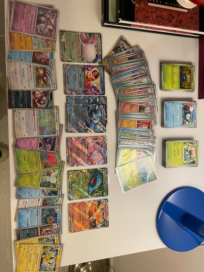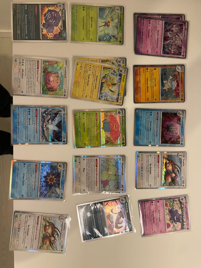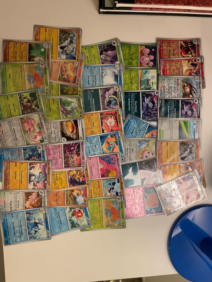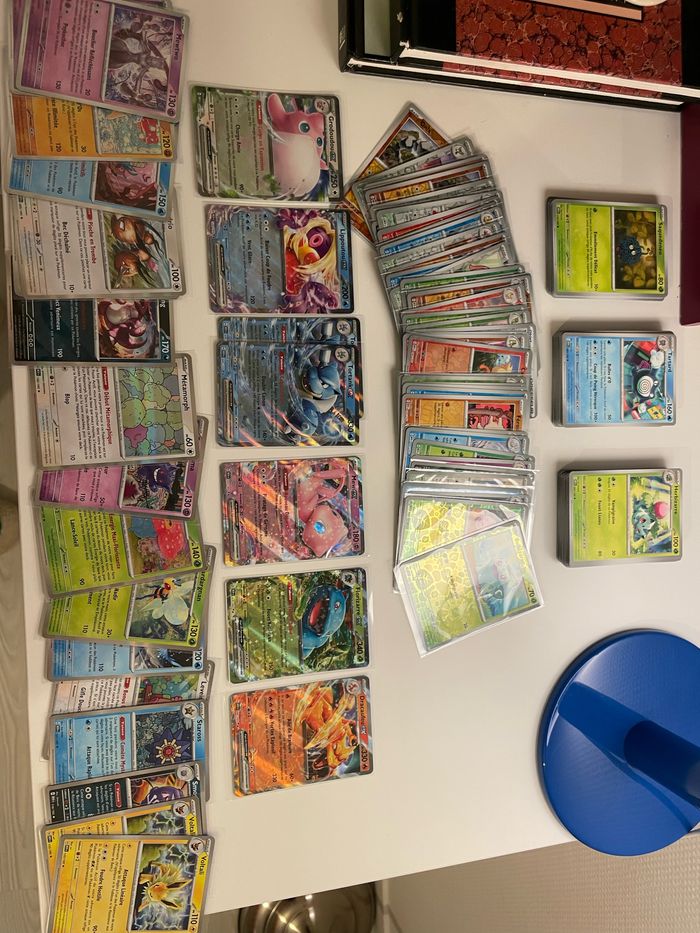 Bonjour, je mets en vente un gros lot de carte contenant. 120co/unco 44 reverses 20 holo 7 Ex Sortie de booster, coffret eau florissant, 151