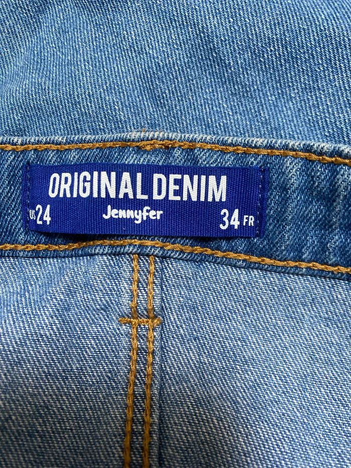 Jupe trapèze en jeans avec ceinture à nouer Taille 34 100% coton Jennyfer La ceinture mesure à plat 37 cm donc peut convenir aussi pour une taille 36 Longueur milieu devant 37,7 cm