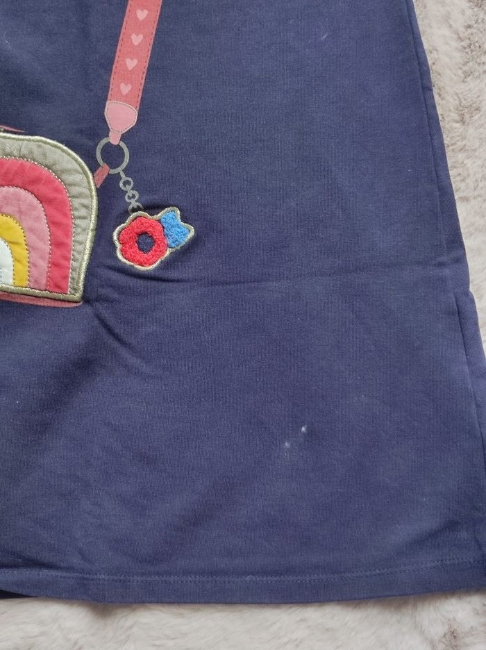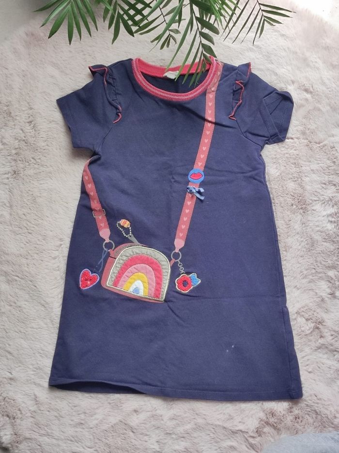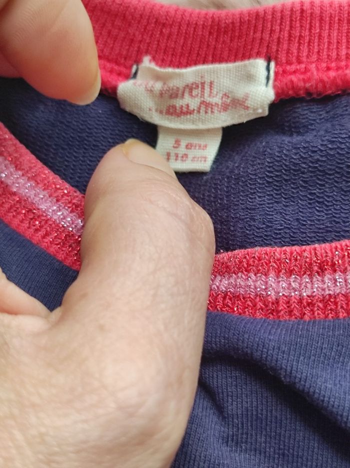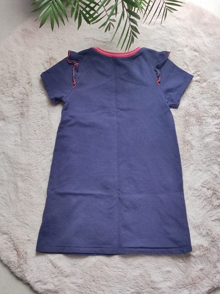 Petit robe a manches courtes de la marque DPAM, taille 5 ans. sa couleur n'est plus aussi intense qu'au premier jour, toutefois elle n'est ni déchirée ou troué., 2 petites taches sur le bas.