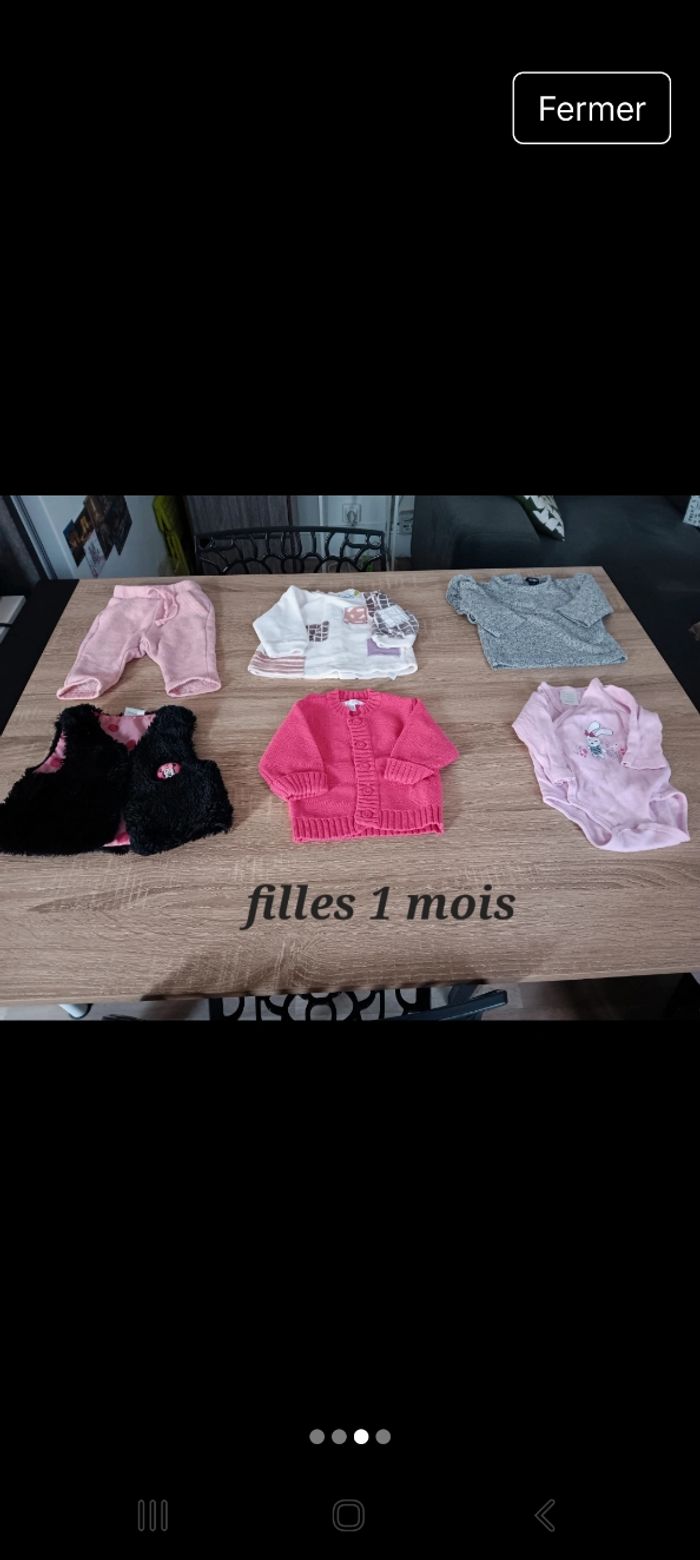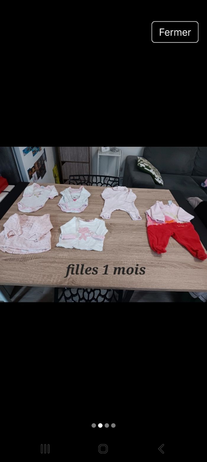 Vêtements filles 1 mois Très bon état 1€ le vêtement Possibilité de crée votre lot et de proposer votre prix OU Le lot entier 10€ (21 vêtements)
